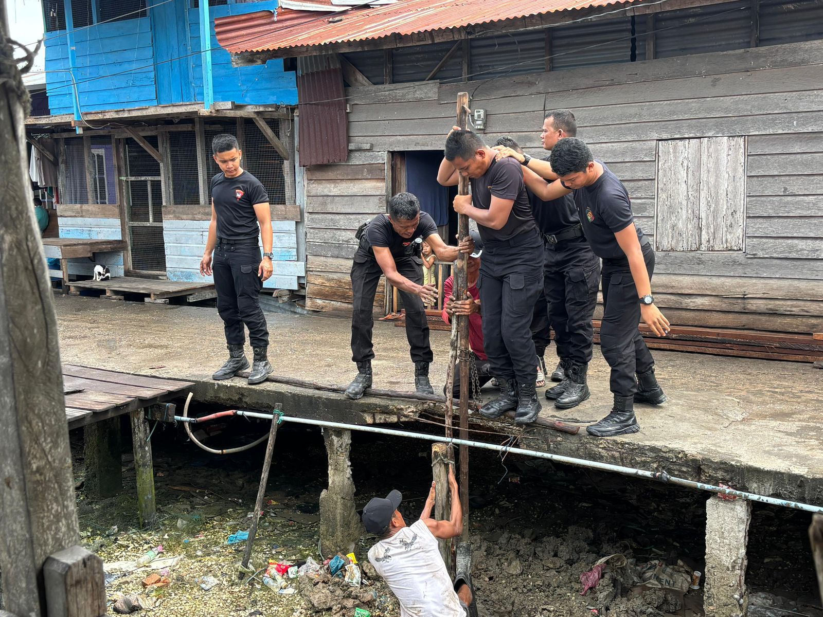 Polri Peduli, Brimob Polda Riau dan Polres Rohil Perbaiki Jalan Rusak di Panipahan