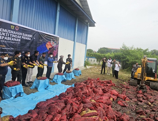 "Kegiatan pemusnahan ini merupakan hasil dari operasi laut terpadu yang menggagalkan penyelundupan bawang dari Kuala Linggi, Malaysia, menuju Sepahat, Bengkalis," ujar Dedi, Rabu (17/9/2025).