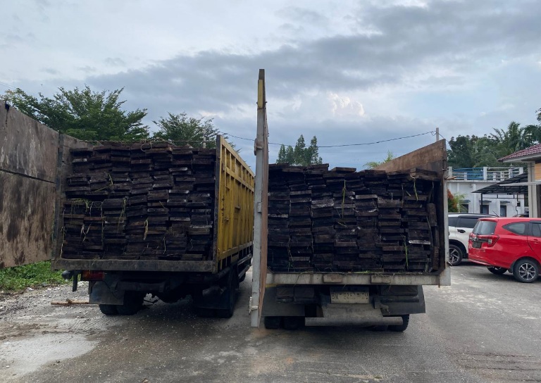 Polda Riau Gagalkan Truk Kayu Ilegal dari SM Kerumutan, Dua Sopir...