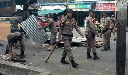 Satpol PP Rohil Bongkar Kios di Persimpangan Jalan...